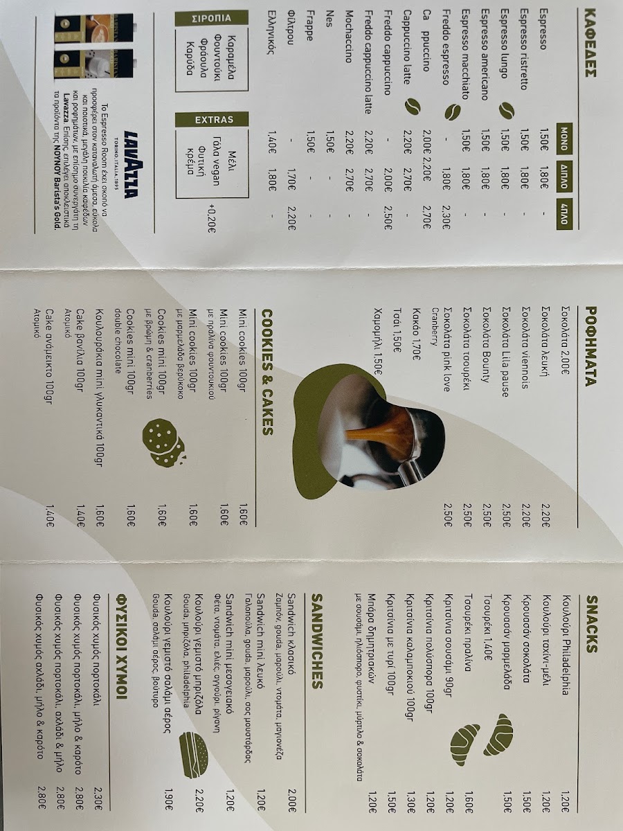 The café prides itself on its diverse menu, where you can indulge in a selection of delicious offerings. Start your day with a revitalizing Φυσικός Χυμός Αχλάδι, Μήλο & Καρότο, bursting with fresh fruity goodness and energy-boosting vitality, priced at just €3.30. Or, for true coffee aficionados, the Espresso Ristretto is a must-try. With its rich and intense flavor, this smaller shot delivers all the joy and depth of a full espresso without the bulk - a decadent experience for only €1.70.